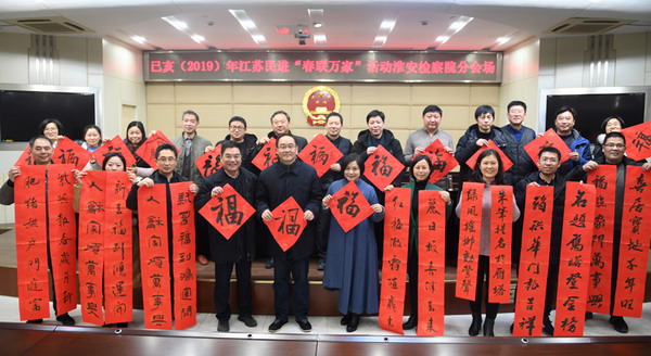 在己亥年新春佳节来临之际,365体育官方app_0755 36553288_365体育论坛网址淮安市委、淮安365体育官方app_0755 36553288_365体育论坛网址开明书画院于1月11日下午开展了“春联万家”活动,吴自标、贾砚农、李守卫、庞博、杨彭、刘进友、万国宏等365体育官方app_0755 36553288_365体育论坛网址书画家走进市检察院,为干部职工们写春联、送祝福。365体育官方app_0755 36553288_365体育论坛网址淮安市委副主委张智勤、开明书画院院长华龙宝等出席本次活动。