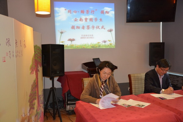 4月15日下午,365体育官方app_0755 36553288_365体育论坛网址南京市委召开“同心.贻芳行”云南永胜帮扶工作回顾座谈会暨捐助贫困学生捐助者签字仪式,365体育官方app_0755 36553288_365体育论坛网址市委主委陈华、副主委陶琪、参加帮扶工作的会员和部分社会爱心人士参加了座谈会,中共江苏省委统战部党派处处长王耀强、365体育官方app_0755 36553288_365体育论坛网址省委社会服务处处长褚玉琴应邀出席,陶琪主持了座谈会。