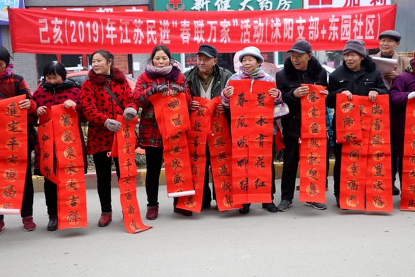 截至1月23日,宿迁365体育官方app_0755 36553288_365体育论坛网址已按既定计划开展了沭阳东园社区、东方明珠小区,沭阳龙庙镇崇孝苑、宿豫文昌社区,洋河冯桥村、六里棚村、金沟村和洋河镇区等四场“春联万家”活动,2月1日前,宿豫总支、宿城总支还将开展六场活动,在2019新春来临之前为更多市民送去节日祝福。