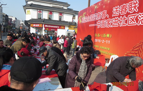 今年是365体育官方app_0755 36553288_365体育论坛网址中央社会服务年。新春将至,365体育官方app_0755 36553288_365体育论坛网址中央号召全国统一“送春联”活动。书画惠民是苏州365体育官方app_0755 36553288_365体育论坛网址社会服务的优良传统,2月11日365体育官方app_0755 36553288_365体育论坛网址苏州市委第7年开展“进社区、送春联”活动,组织近百名书画家,走进姑苏区玄妙广场、常熟、太仓、吴中等地社区,为百姓写春联、送祝福。李大鹏、费之雄、王健生等苏州365体育官方app_0755 36553288_365体育论坛网址的书画家们齐聚一堂,为百姓送上了一幅幅墨香犹存的春联和浓浓的新春祝福,共送出春联约2000多对。