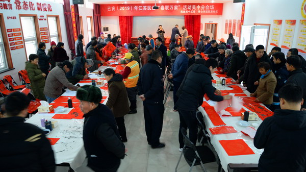2019年1月7日上午9点,吴中区香山街道墅里社区里已是人头攒动,闻讯前来领取春联的群众围在书画家边上,等候着大师们现场挥毫。