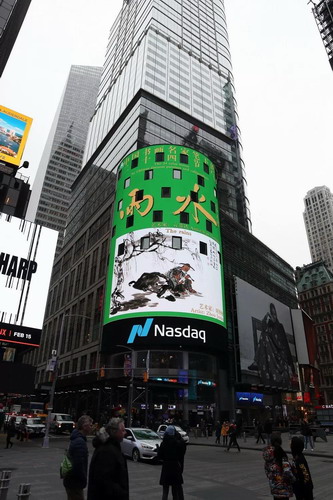 在大洋彼岸的纽约时代广场,纳斯达克大屏上出现了苏州365体育官方app_0755 36553288_365体育论坛网址会员周矩敏的画作以及言恭达的书法,让我们一起来看: