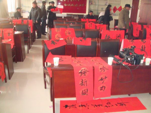 “三羊开景泰 双燕舞春风”“羊毫书特色 燕翼绣春光”“才听骏马踏花去 又见金羊献瑞来”……一副副苍劲有力、洋溢着新春祝福的春联,在各位书法家饱蘸热情的笔端精彩呈现;一句句吉祥如意的话语,为即将来临的春节增添了浓浓的喜庆氛围。半天活动,书法家们共题写了春联、福字300多幅,受到广大群众的热烈欢迎和广泛好评。