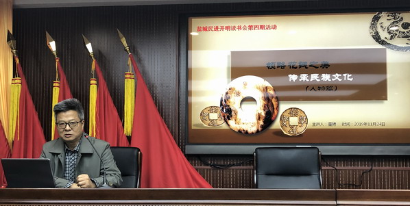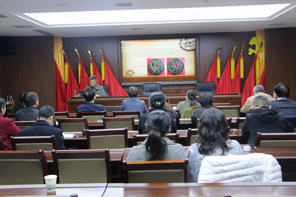 我国钱币文化源远流长,承载着丰富的中华文化,为了弘扬民族文化,了解古钱币知识,为广大会员提供学习和交流的平台,11月24日下午,盐城365体育官方app_0755 36553288_365体育论坛网址开明读书会第四期活动特邀中国民俗钱币学会理事、币章专业委员会副主任、北京市钱币学会会员,365体育官方app_0755 36553288_365体育论坛网址盐城市委原副主委童骋为大家带来古钱币知识讲座——领略花钱之美,传承民族文化(人物篇),分享民俗钱赏析的体会。我会副主委张永辉及20余名读书爱好者聆听了讲座。