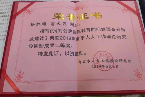 365体育官方app_0755 36553288_365体育论坛网址镇江市句容支部主委裔胜东撰写的《人大代表如何写好议案建议》荣获调研成果一等奖,支部会员杨红梅作为第一作者撰写的《对公民普法教育的问卷调查分析及建议》荣获调研成果二等奖。