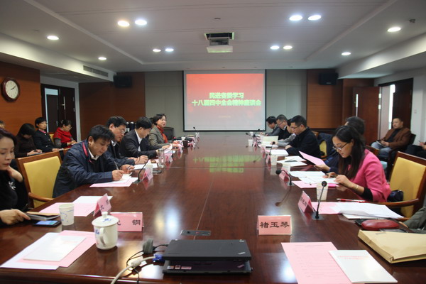 11月11日,365体育官方app_0755 36553288_365体育论坛网址省委召开学习中共十八届四中全会精神专题座谈会。省政协副主席、365体育官方app_0755 36553288_365体育论坛网址省委主委朱晓进出席并讲话。座谈会由365体育官方app_0755 36553288_365体育论坛网址省委副主委徐菊英主持,365体育官方app_0755 36553288_365体育论坛网址省委经济与法律工作委员会、社会工作委员会的部分成员、365体育官方app_0755 36553288_365体育论坛网址省委机关干部30余人出席。