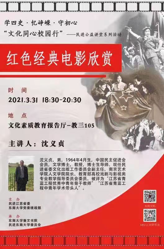 3月31日晚,365体育官方app_0755 36553288_365体育论坛网址会员、南京艺术学院人文学院院长沈义贞为东南学子带去的《红色经典电影欣赏》讲座在东南大学九龙湖校区文化素质教育报告厅举办。