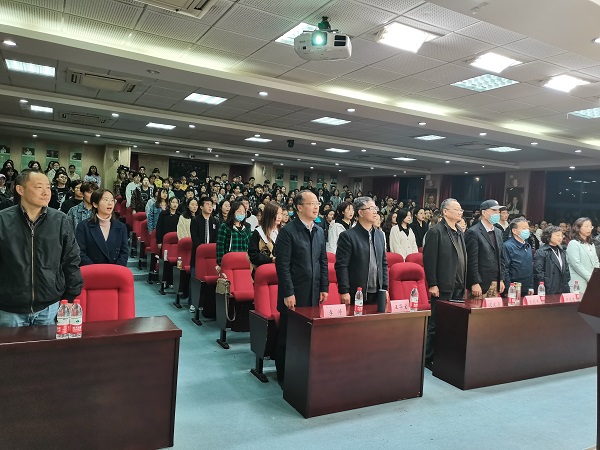 讲座正式开始前,全体师生在《临江仙》优美的旋律伴奏下齐唱东南大学校歌。“百哉文枢江左,东南辈出英豪!”在令人振奋的校歌声中,《红色经典电影欣赏》专题讲座拉开帷幕。