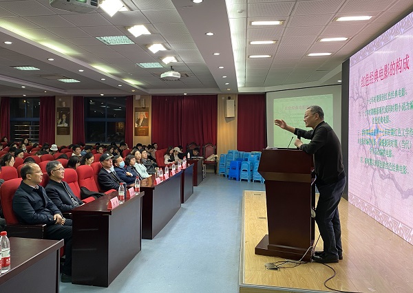 沈义贞教授从红色经典电影的基本内涵引入,即1949-1966年间的原创电影,或据此时的电影、小说改编的现代电影,以中国古代、现代历史为题材,以弘扬革命文化为主旨;通过部分经典片段和人物对白,深刻阐述了红色经典电影所表现的英雄主义精神、集体主义精神、乐观主义精神和理想主义精神四种美学精神;沈教授还详细地分析了不同时期,电影的不同表现形式反映出的内容,很好地诠释了中国共产党为什么“能”,马克思主义为什么“行”,中国特色社会主义道路为什么“好”三个信条。在谈到当下国产主旋律电影创作时,沈教授郑重指出,一些影片最主要的问题是忽略了国家形象的塑造,甚至是歪曲和矮化国家形象。特别是一些导演和编剧在创作中,或出现将国家情感与个人情感对立起来表现,或将重大复杂的政治、经济、军事、历史、社会事件等简化为一般关系来表现,等等这些,导致电影缺乏全方位、全景式把握当代现实生活的能力,进而导致史诗式的“现实主义大片”的整体缺失,而这些问题均需要在以后的创作过程中加以修正。