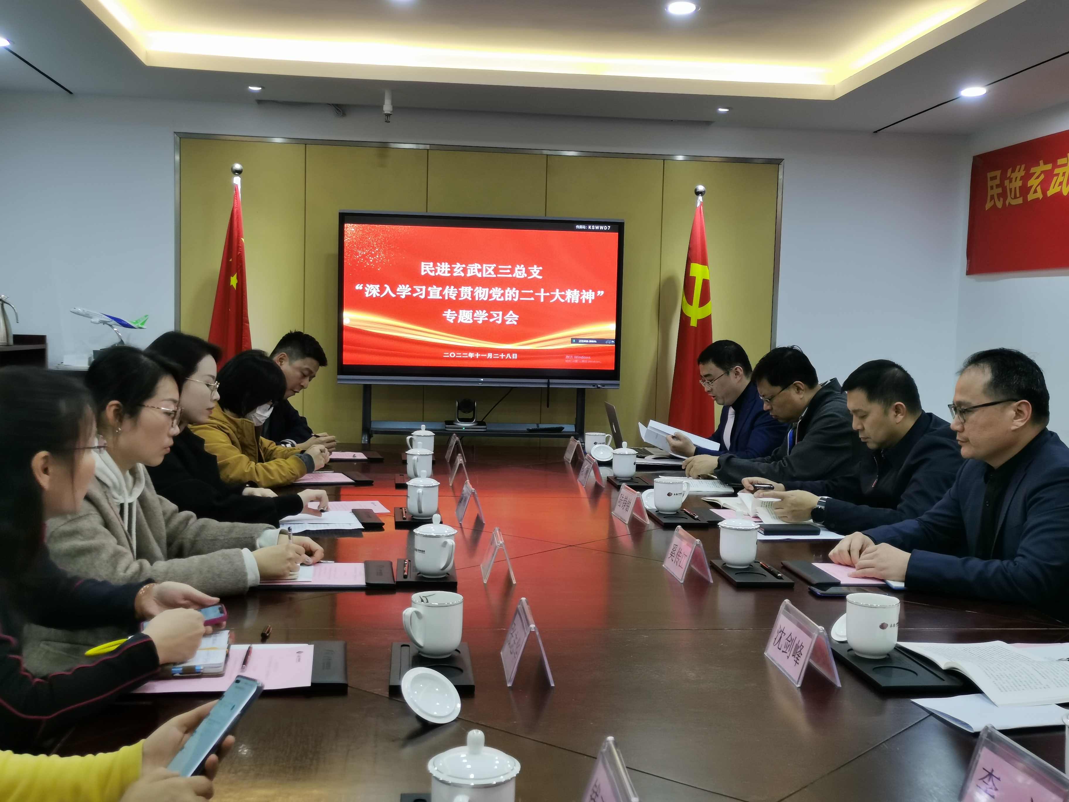 为切实把总支广大会员们思想统一到党的二十大精神上来,本次会议创新学习形式,利用腾讯会议开展线上线下同步学习。按照专题学习计划,唐俊华带领与会人员共读原文,深悟原理。全体与会人员倍感振奋、深受鼓舞,大家结合本职工作,交流了学习中共二十大精神的心得体会,畅谈了未来的工作计划。