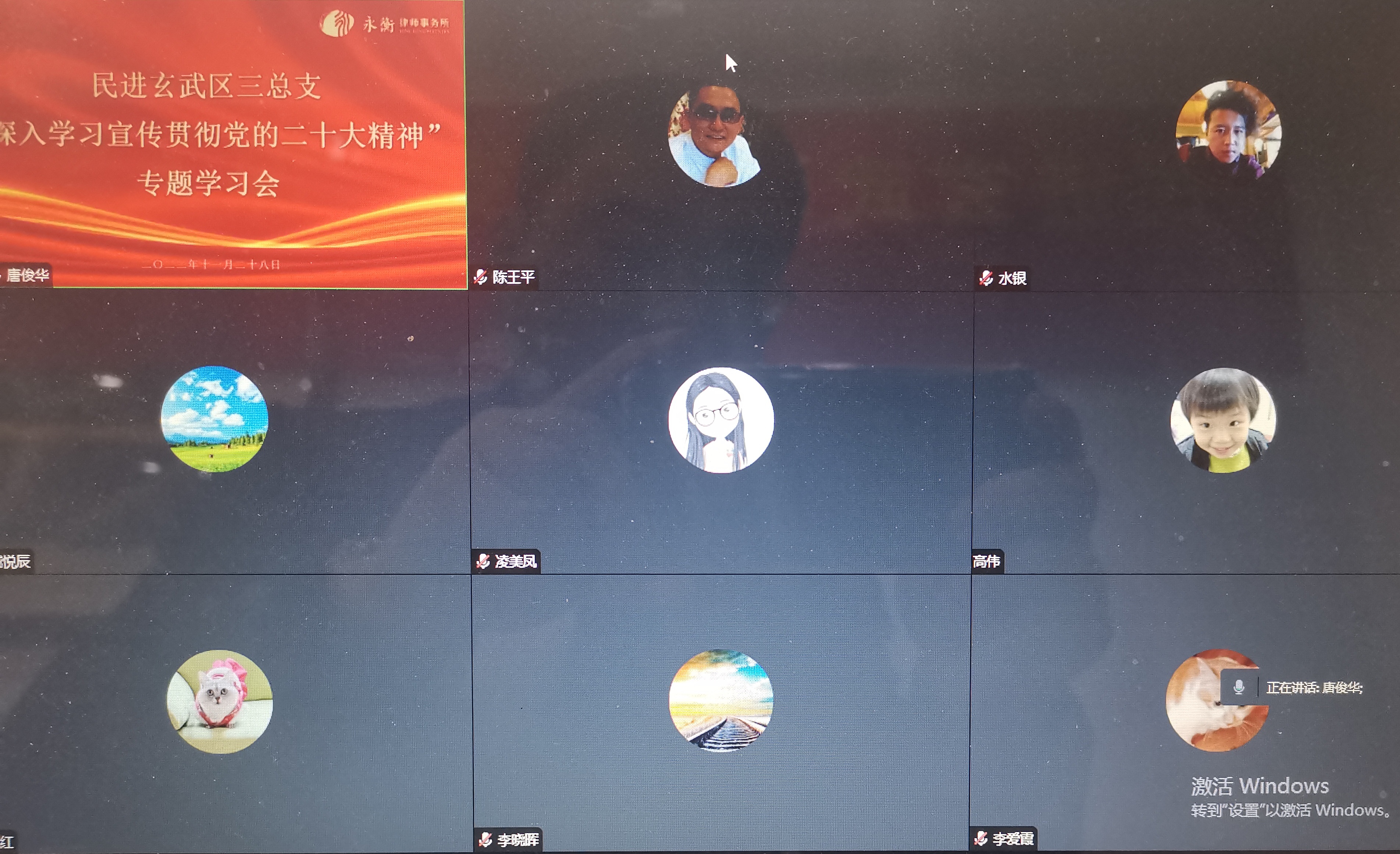 11月28日,365体育官方app_0755 36553288_365体育论坛网址玄武区三总支在江苏永衡律师事务所会议室召开“深入学习宣传贯彻党的二十大精神”专题学习会。365体育官方app_0755 36553288_365体育论坛网址南京市委常委、秘书长陆铮铀,组织处处长胡刚,参政议政处处长沈剑峰,365体育官方app_0755 36553288_365体育论坛网址玄武区三总支主委唐俊华及各支部主委、骨干会员参加会议,中共江苏永衡律师事务所党支部书记奚传江应邀参加。会议由唐俊华主持。