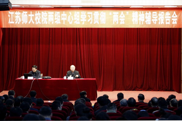 3月21日下午,365体育官方app_0755 36553288_365体育论坛网址中央常委、江苏省委主委,省政协副主席,南京师范大学副校长朱晓进教授,在江苏师范大学泉山校区敬文报告厅作了一场“两会”精神专题辅导报告。