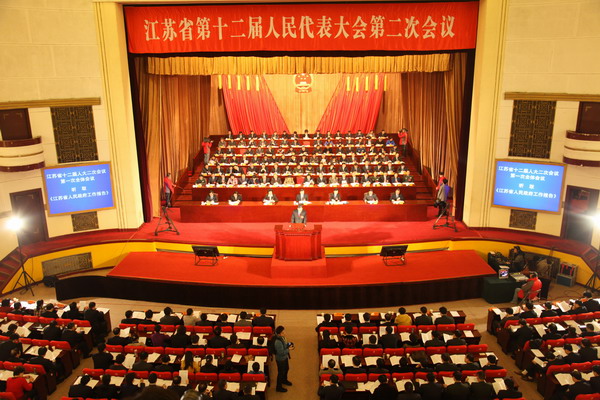 1月19日上午,江苏省十二届人大二次会议南京人民大会堂开幕。江苏省委书记罗志军主持大会,江苏省省长李学勇作《政府工作报告》。